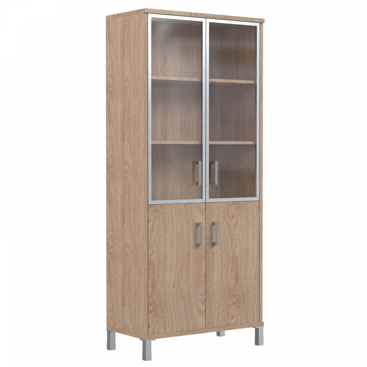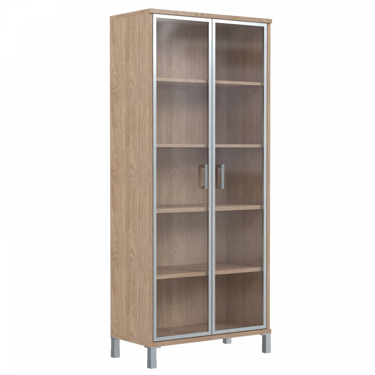 Шкаф высокий со стеклянными дверьми в AL-рамке B 430.8 Дуб Девон 900х450х2054
