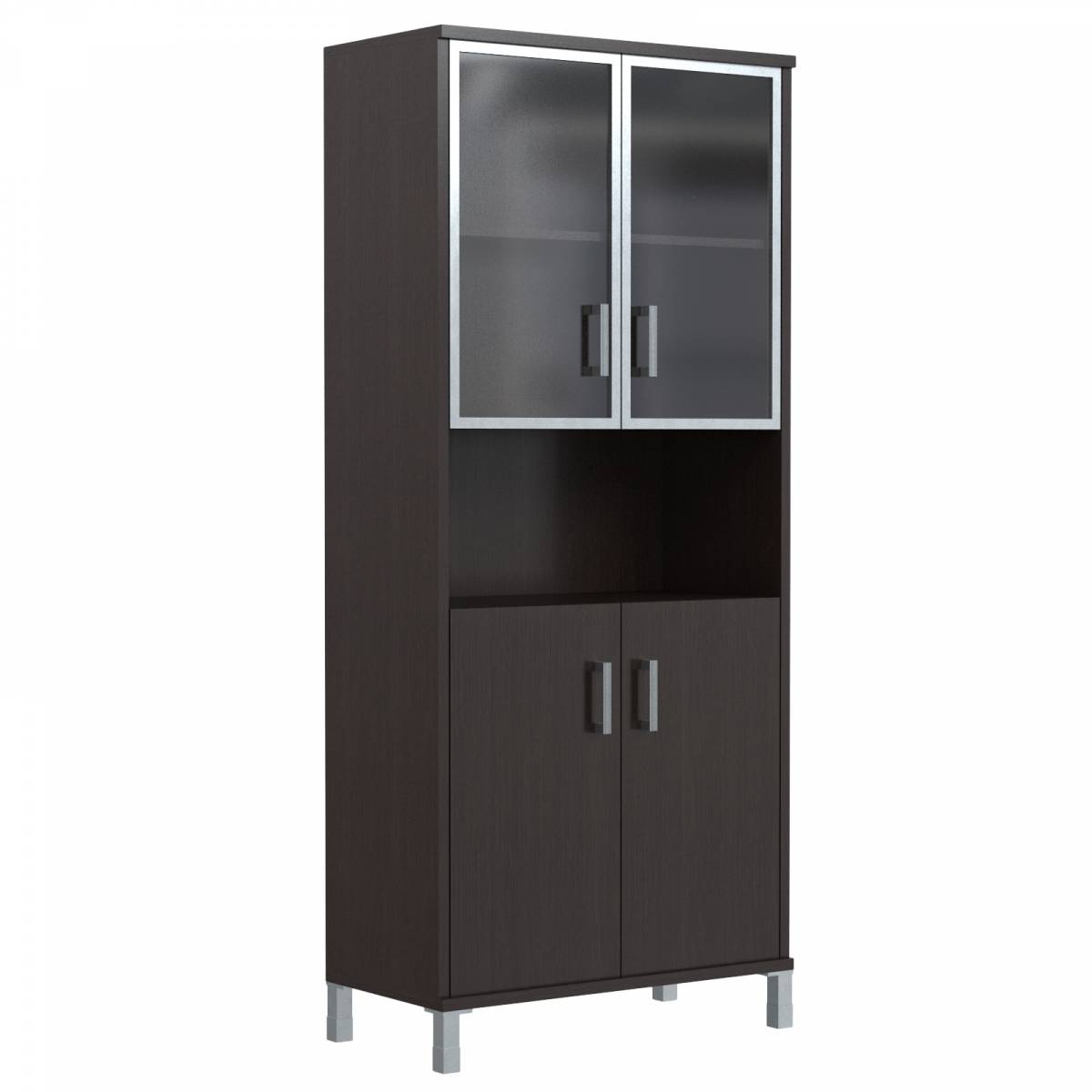 Шкаф высокий с малыми стеклянными дверьми в AL-рамке и глухими B 430.9 Венге Магия 900х450х2054